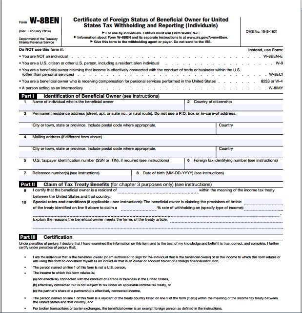 The W-8BEN is a simple one page form that one can fill without any guidance and its only purpose is to identify the applicant as a non-U.S. citizen. One can take a look and also download the form directly from the IRS website.
